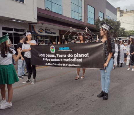 As escolas trouxeram para a avenida homenagens aos músicos e artistas culturais bonjesuenses, fazendo a relação entre o passado e o presente.