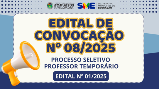 EDITAL DE CONVOCAÇÃO Nº 08-2025 – PROCESSO SELETIVO PROFESSOR TEMPORÁRIO