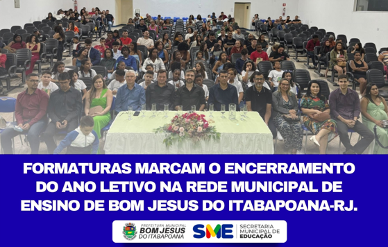 FORMATURAS DAS ESCOLAS MUNICIPAIS DE BOM JESUS DO ITABAPOANA: ALUNOS CONCLUEM MAIS UMA ETAPA