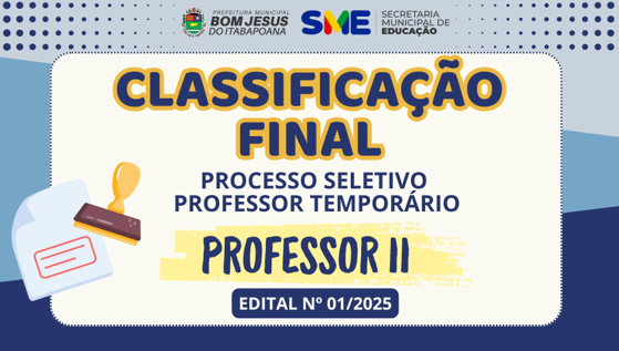 RESULTADO FINAL DA CLASSIFICAÇÃO PROFESSOR II- PROCESSO SELETIVO PROFESSOR TEMPORÁRIO
